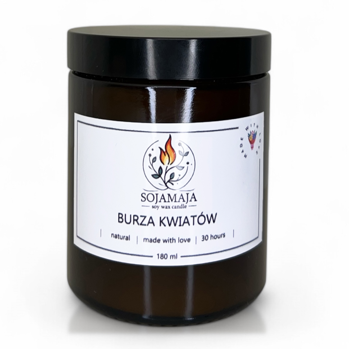 Naturalna świeca sojowa Burza Kwiatów to idealny sposób na stworzenie magicznej atmosfery w Twoim domu. Doskonała na prezent dla bliskiej osoby, która ceni piękno natury i wyjątkowe chwile relaksu. Pozwól, by zapachowe nuty przeniosły Cię w świat pełen kwiatowej harmonii i zmysłowej elegancji.