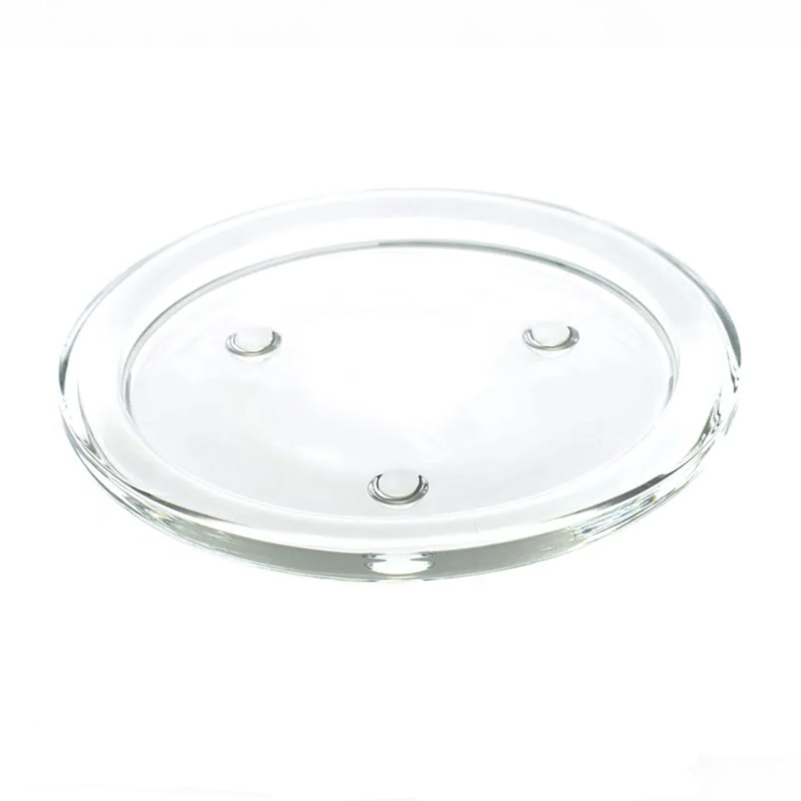 Jej przezroczysta forma nadaje całości minimalistyczny, uniwersalny charakter, dzięki czemu pasuje do każdego wnętrza – od nowoczesnych aranżacji po klasyczne przestrzenie. Delikatnie podniesione ranty oraz antypoślizgowe wypustki stabilizują świecę, zapobiegając jej przesuwaniu się.